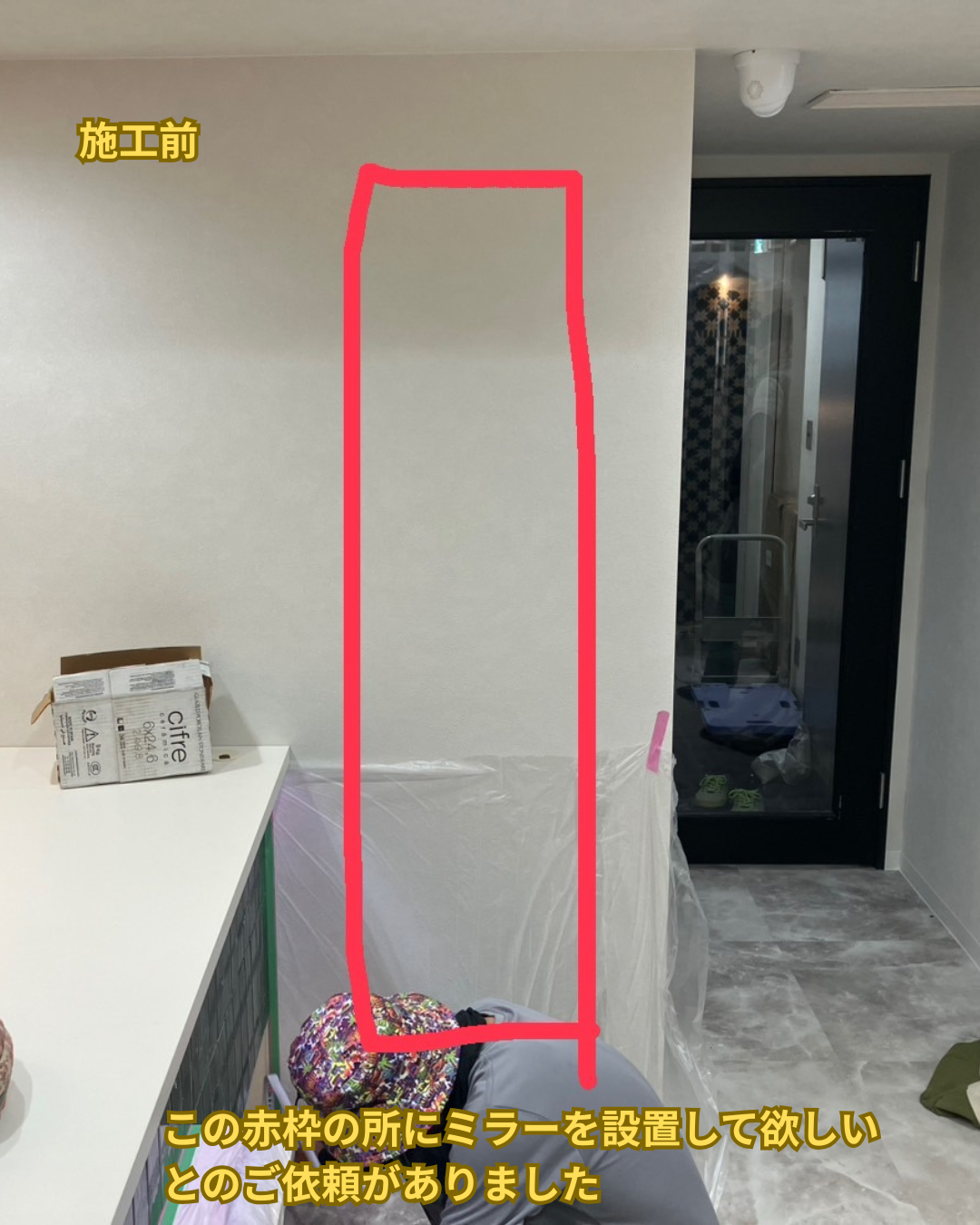 ミラーが出来たら施工です。